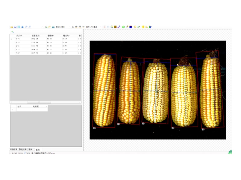 3、玉米截麵分析功能:玉米的穗粗、軸粗、穗行數、粒寬。一次性最少可測15個截麵。